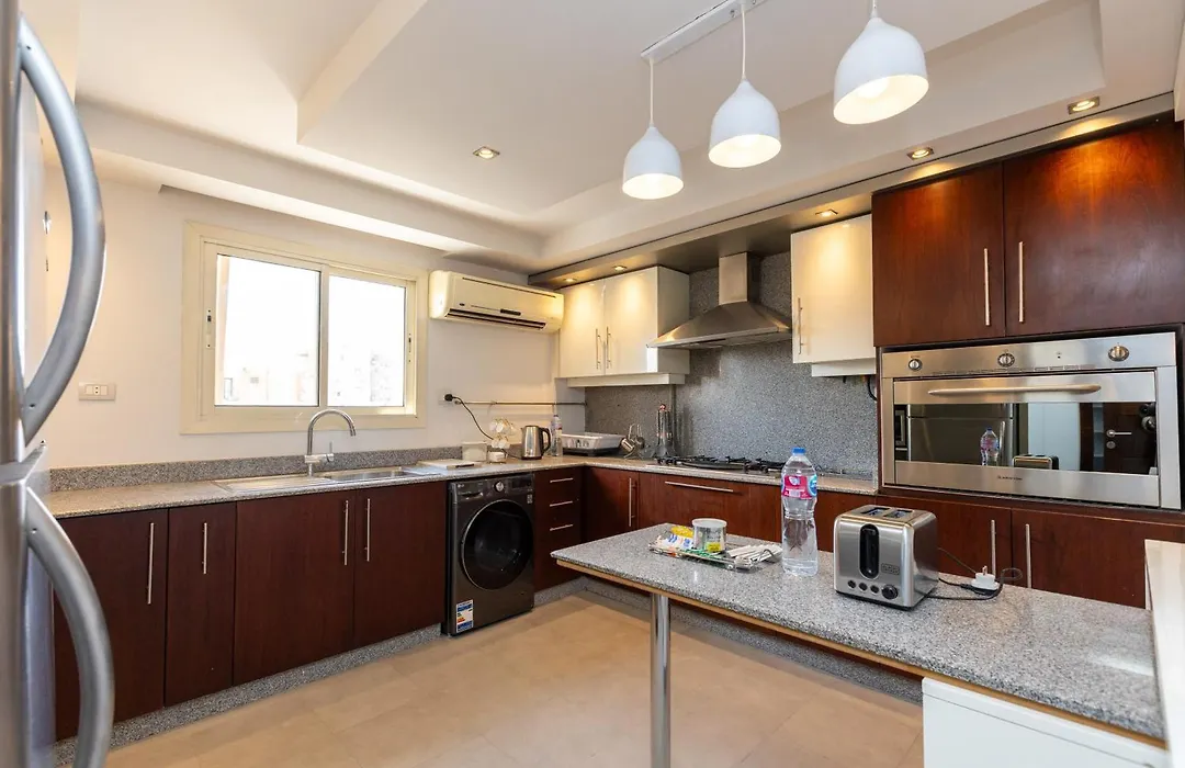 El apartamento 3Br With Private Pool + Rooftop | Mohandessin está equipado con una cocina bien equipada.